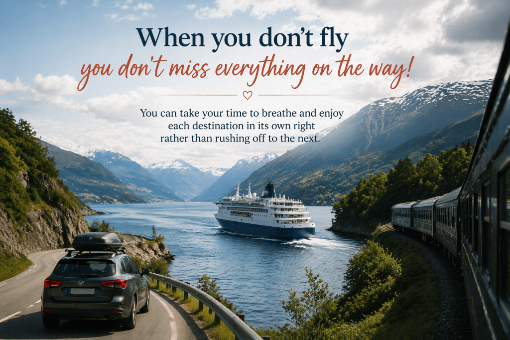 Slow travel by car, ship and train — no planes, no rush, just the journey.